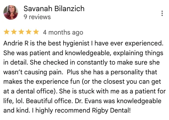 Dr. Evans and his family moved back to Utah in 2020 and joined the Army Reserves. Dr. Evans and his wife, Emily, have three beautiful girls and just welcomed a baby boy in 2024. We are excited to have his knowledge and expertise at Rigby Dental!