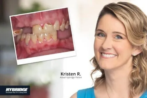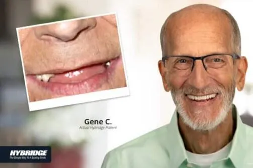 Hybridge Dental Implants are more stable and comfortable than dentures. They don't slip or need adhesive, and they help maintain the bone structure of your jaw, keeping your face looking natural.